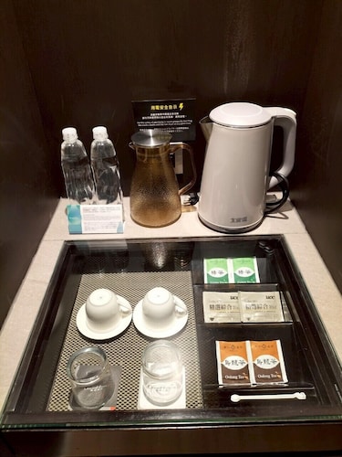 高雄市地下鉄(MRT)信義国小から徒歩5分ほどとアクセスが便利な 「高雄商旅」 は、ビジネスにも観光にもおすすめです。茶色、黒などのダークカラーを基調にした外観、内装はシックで落ち着いた雰囲気です。ホテルは2008年にできましたが、掃除などが行き届いていて、きれいで新しく感じます。フロントには日本語のできるスタッフがいることもあるので、言葉ができない方も安心です。「時尚館」 と 「雅緻館」 に分かれている客室数は167もあり、フロントに向かって左右のエレベーターで「時尚館」と「雅緻館」に分かれています。エレベーターはカードキーをタッチすると動くシステムです。「雅緻館」は長期滞在向けなので、滞在日数が少ない方や観光の方には「時尚館」がおすすめです。部屋は落ち着いた色でまとめられていて、照明も明るくないので、ゆっくり休むことができます。お部屋にはビジネス用にも便利な大きなデスクがひとつあります。また、ミネラルウオーター2本、ポット、ティーカップ、グラス、ティーパック(緑茶、烏龍茶、紅茶、インスタントコーヒー)が置かれています。クローゼットには、使い捨てスリッパと浴衣も置かれています。 タオルは小、中、大のサイ