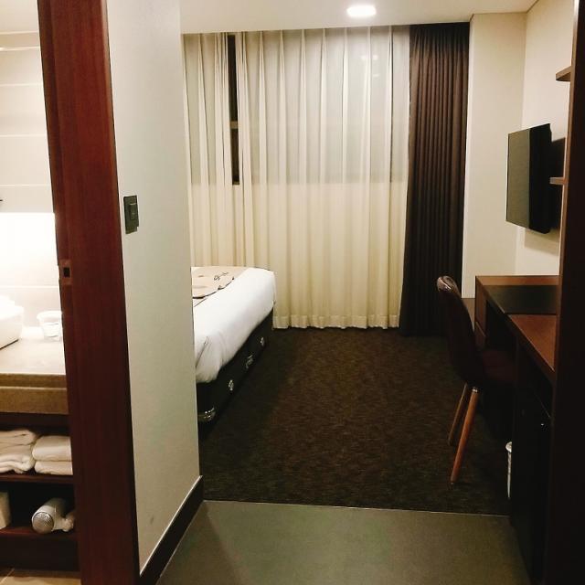 昨年、「現代シティアウトレット」の上層階にオープンした「ホテル スカイパークキングスタウン東大門」。まさに人気ショッピングエリア東大門のド真ん中という好立地で、時間を気にすることなく、真夜中まで買い物やグルメ、チムジルバンを楽しめちゃいます。しかも、14Fのロビーにはコンビニやカフェも併設。フロントも日本語を話せるスタッフがいるので、これまでのところ特に不便は感じていません。部屋では無料Wi-Fiが使えるほか、必要なアメニティもほぼそろっています。中でも嬉しいのがバスタブ。ホテルの近くにチムジルバンがあるものの、やはり部屋でのんびりと入浴できる設備はありがたいです。掃除が行き届いた清潔感のある部屋は広さもちょうどよく、居心地の良さも抜群。周囲はもちろん、建物の地下にもフードコートがあるので、食事にも困りません。宿泊料金はシーズンによって変動しますが、質の高さと利便性を考えると、満足できるコストパフォーマンスではないでしょうか。場所は地下鉄1、4号線「東大門駅」と、2、4号線「東大門歴史文化公園駅」のほぼ中間。どちらの駅からも5~6分という距離です。空港からリムジンバスを利用すると停留所からは少し歩きますが