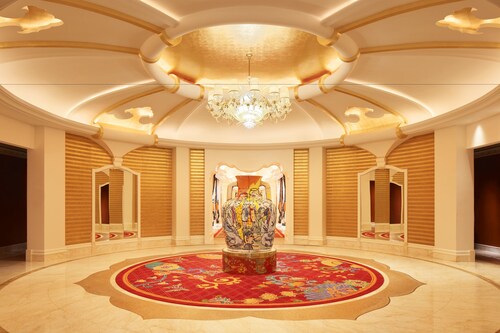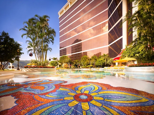 【Wi-Fi全館無料】【カジノ併設】 マカオ最大の噴水ショー「パフォーマンスレイク」やその周りを回る「スカイキャブ」がマカオの新しいエンターテイメントとして話題。全室バスタブ付きで客室はカラフルなインテリアでお部屋の広さは68㎡からと大変ゆったりしております。厳選された世界的ブランドの50軒以上が、広さ約18,500㎡の「ウィン・エスプラネード」に勢揃い。創業者のスティーブ・ウィンは、優れた西洋とアジアの芸術作品をマカオに集め、ウィン・パレスの施設内随所に展示をしました。たくさんの作品がパブリックスペースの見やすい場所に展示されており、自由に芸術を鑑賞することができます。