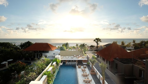 【Wi-Fi全館無料】 レギャンビーチ沿いのホテルで、道路を渡ればすぐそこがビーチです。お部屋は広く、47㎡からとなり、ベッドにテーブル、ソファがあり、快適な滞在が楽しめます。朝食はオープンエアのレストランで、南国の風を感じながらお召し上がり頂けます。(予告なく変更となる事があります。) ※ニュピ(2026/3/19)はチェックイン及びチェックアウトができません。