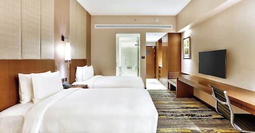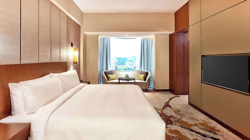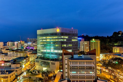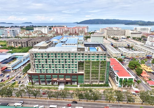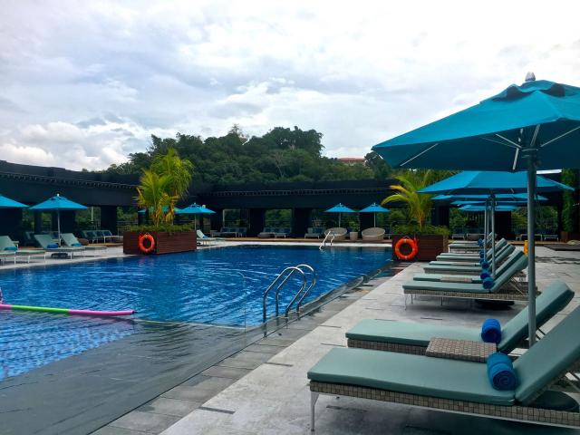 2017年にオープンしたばかりのヒルトン・コタキナバルは街の中心エリアから歩いて5分程度。