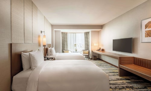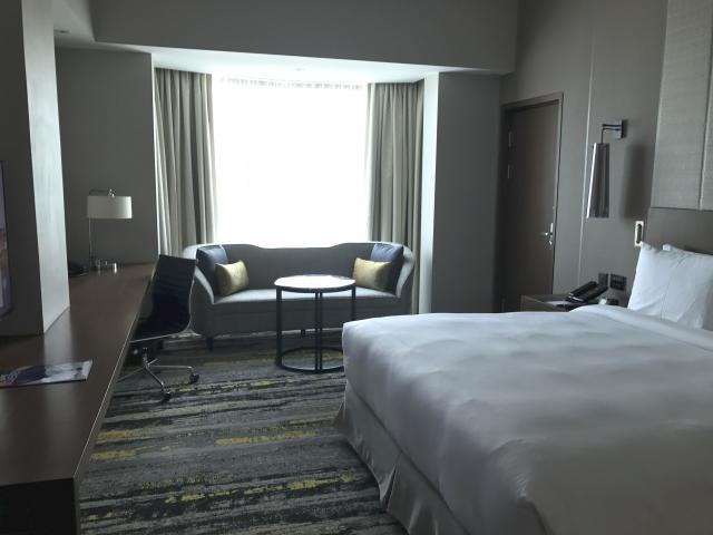 ヒルトンなのにお手頃価格で泊まれるところが魅力的。ベッドもふかふかで、シンプルながらもゆったりと快適なお部屋です。