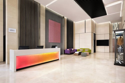 買い物に、両替に、ソウル観光で外せない人気ナンバーワンエリアが明洞ですね!その明洞に2017年2月に開業した新しいホテルです。中古ホテルのリノーベーションではなく、新しく建設されたビルの全棟がホテルなので、本当に新しいホテルの誕生となりました。客室は採光性の良い窓で天井も高く開放感があります。細部まで設備の使い勝手の良さを実現しているのは最新ホテルならでは。端子類は全てユニバーサルタイプなので電化製品使用時でも韓国用のプラグは不要です。明洞エリアの中でも少し外れに位置しますが、その分静かで落ち着いた立地。付近にはロッテ百貨店、ロッテ免税店、新世界百貨店、南大門市場、が徒歩すぐの場所にあり、また、少し足をのばせば、仁寺洞、鐘閣エリアも徒歩圏内。ソウル観光で外せないエリアを回っても、ホテルが近いので行動するのにとても便利です。スタッフの対応も礼儀正しく親しみがこもっていて、また泊まりたいと思えるホスピタリティー。1階にはコンシェルジュが常駐しており、交通手段や観光案内を行っています。(韓国語又は英語)2階がホテルレセプションになります。SPG系列のホテルチェーンとなり、カジュアルモダンなインテリアと手頃な価格