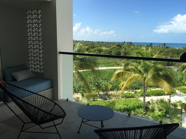 ファイネストはカンクンの街から約10㎞北にある、“プラヤ ムヘーレス” というエリアに佇むリゾートです。カンクンのホテルゾーンやリビエラマヤは、ガイドブックでも多く紹介されていので知名度が高いですが、プラヤ ムヘーレスは知っている人が少ない穴場スポットなのです!このエリアに点在するリゾートはどちらも高級感があり、落ち着きのある空間の中でゆったりと過ごすことができます。その中でも注目を集めているのがここファイネスト。館内は近代的な建築や装飾で、大人向け。数年前にオープンしたばかりなので、客室も清潔感があります。室内はスタイリッシュな造りでとても快適に過ごせます。水周りも清潔で、シャンプーなどのバスアメニティも豊富です。全体的にスタイリッシュなのですが、一歩外に出れば緑に包まれていて和やかな雰囲気が漂っています。広大な敷地を存分に使っているので、朝イチでビーチチェアを確保!なんていう心配もありませんし、プールサイドやバーで寛いでいても他のお客さんが気にならないところが、ゆったりとしたバケーションを楽しめるポイントだと思います。広々としたプールでは小さなお子様連れもたくさんみられましたし、穏やかなビーチで遊ぶこ