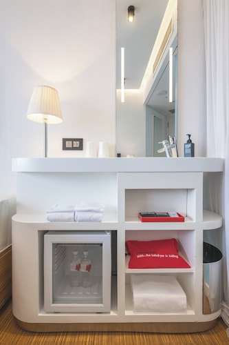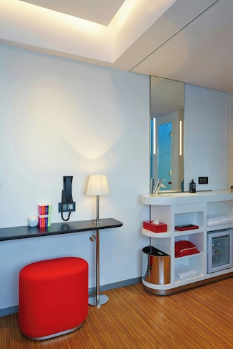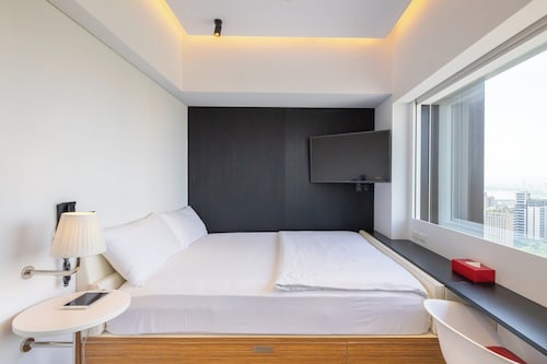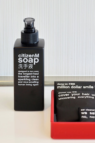 シチズンMホテルは2017年の8月からオープンした新しいホテルです。黒いビルでスタイリッシュな感じです。ホテルに入るとすぐに、とっても良い香りがします。一階のロビーはこじんまりとした空間です。コンピューターが中央のテープに6台並んでいます。 インテリアは赤と黒が基調になっています。ホテルスタッフの制服もそうです。普通のホテルで見られるカウンターでのチェックインがこちらでは無いんですよ!ネットで予約して、コンピューター作業で、自分でセルフチェックインするんです。予約番号を入れてクレジットカードでお会計します。お部屋のカードキーも自分で作ります。このカードキーは後でトランクのタッグとして使えますよ。なぜセルフチェックインなのかというと、一般のホテルでは、カウンターでホテルスタッフが3人くらいで対応していると、混む時には行列になったりするからだそうです。ホテルスタッフはわからなければ、チェックインをお手伝いしてくれますよ。使用言語は中国語と英語になります。 ホテルスタッフはどこか行きたいところがあったら教えてくれたり、お話したり、民宿の様にきめ細かいアットホームな対応をしてくれるそうです。チェックインを終えて