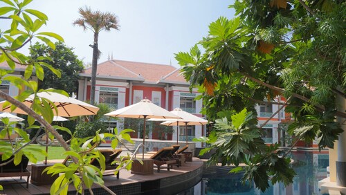 シェムリアップの遊歩道沿いに位置する、ファミリー向けのこのホテルは、オールド マーケット エリア、アンコール ナイト マーケット、パブ ストリートから 2 km 圏内です。ロイヤル ガーデンおよびシェムリアップ ロイヤル レジデンスも 5 km 圏内です。 この禁煙のホテルには、2 か所のレストラン、併設されたワイナリー、および3 つの屋外プールがあります。朝食ビュッフェ (無料)の他に共用エリアでの WiFi (無料)、セルフパーキング (無料)、およびマネジャー主催のレセプション (無料)をご利用いただけます。その他の設備には、フルサービス スパ、フィットネスセンター、および バー / ラウンジがあります。