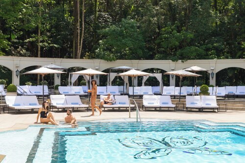 サンパウロの目抜き通り、パウリスタ通りから車で30分から1時間ほどの郊外にある高級住宅街モルンビ地区。そのほど近くにある5つ星ホテル、パラシオ・タンガラは、ドイツのオトカー家が産み出した、ラグジュアリー・ホテル・ブランド“オトカーコレクション”の南米大陸初のホテルとして2017年の5月にオープンしました。静寂を求めて訪れるエグゼクティブが利用するというホテルは、会議室付きのスイートもあり、サンパウロ観光の拠点というよりは、ホテル内でゆったりと過ごす人にお勧めのホテルです。すべての部屋が自然公園に面しており、サンパウロ市内ではめずらしく鳥のさえずりを楽しむことができます。日本人の客を意識してか、バスタブ付きの部屋もあるのが嬉しいところ。アメニティーも完備です。客室の廊下や部屋にはすべてカーペットが敷かれているので、客室フロアは足音さえもしない静かで高級感のある空間となっています。このホテルでお勧めなのは、朝食ビュッフェ。様々な美味しいパンやエッグベネディクト、アサイーボウル、卵料理、チーズや果物がならび、シャンパンも飲み放題で105レアル(約3,000円)。朝食ビュッフェは、宿泊客だけでなく外部の人にも開放