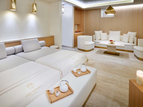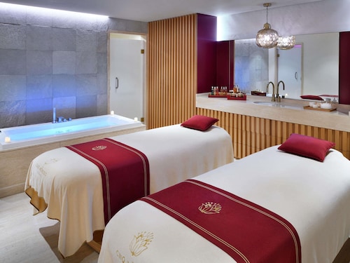 ビーチに位置する、パーム ジュメイラのこのホテルは、パームアイランド、ロスト・チェンバーズ・アクアリウム、アクアベンチャー (テーマパーク)から 5 km 圏内です。パーム・ウェスト・ビーチおよびザ・ポイントも 10 km 圏内です。 ラッフルズ ザ パームでは、プライベートビーチで日差しを浴びたり、フルサービス スパでリラックスしたりしてくつろいだら、ホテルの 4 か所のレストランでお食事をお楽しみいただけます。 客室清掃はリクエストにより行われます。