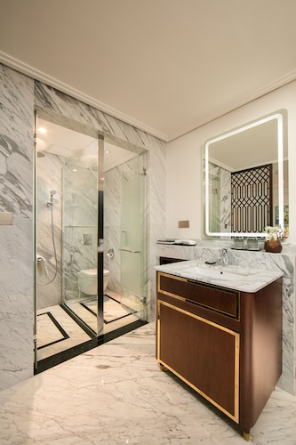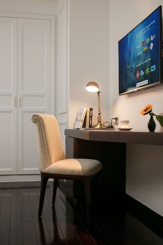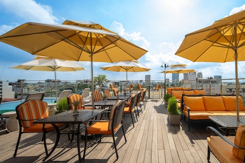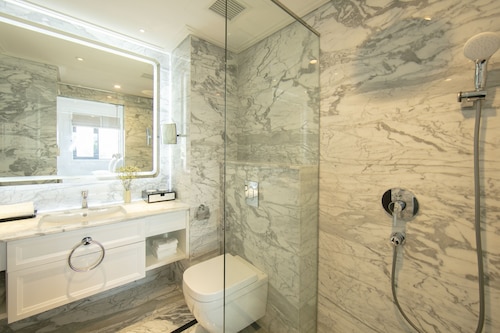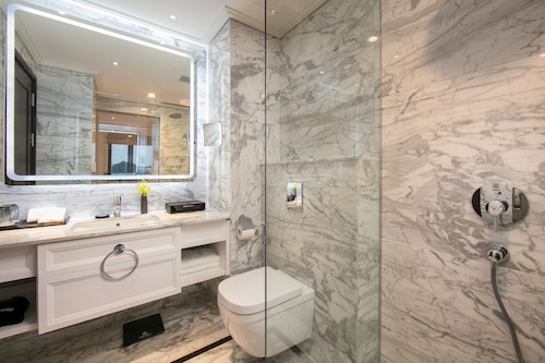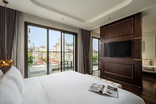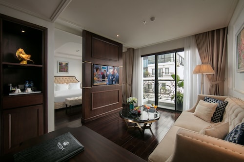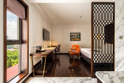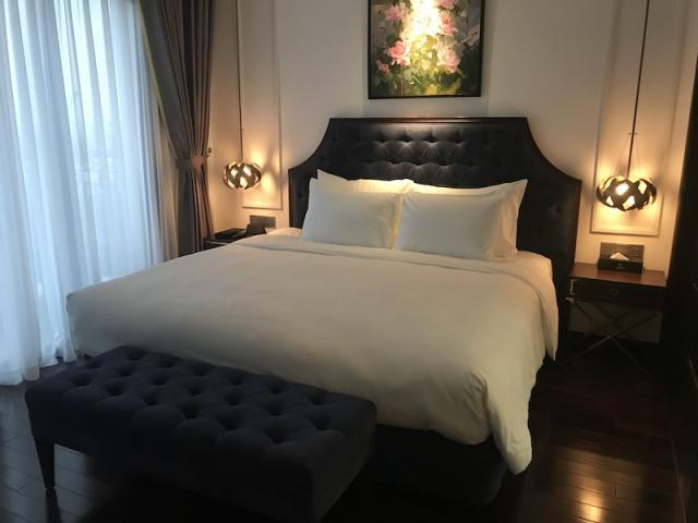 聖ヨセフ大聖堂から歩いて1分ほど、旧市街の中心にあるホテルです。白と金のきらびやかな外観が特徴です。スタッフのアオザイも金なのでとても目立ちます。こちらのホテルのポイントは、どのスタッフもとても親切で丁寧なことです。日本語対応ではありませんが、ちょっとした質問から急なお願いまで、一生懸命親身に対応していただきました。お部屋は白とウッドテイストでまとめられており、シンプルですが清潔感があります。いちばん下のクラスの部屋でも25平方メートルの広さがあるので、気分もゆったりとくつろげます。バスタブはエグゼクティブ以上のカテゴリーのお部屋にあります。シャワーの水圧も十分あるので快適です。アメニティは石鹸、歯ブラシ、シャワーキャップ、コットンバッド、剃刀、コームが用意されています。シャンプー、リンス、ボディーソープは大きなボトルです。朝食は地下のレストラン会場となります。種類は多くありませんが、ベトナム料理とウエスタンのビュッフェとなります。ホテル自体は4つ星ですが、立地とスタッフの対応は5つ星ランクに匹敵すると思います。観光でハノイを訪れる方にオススメです。