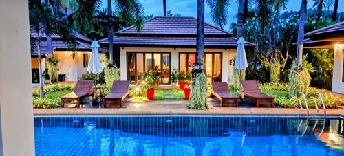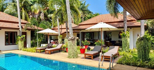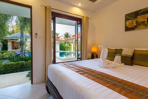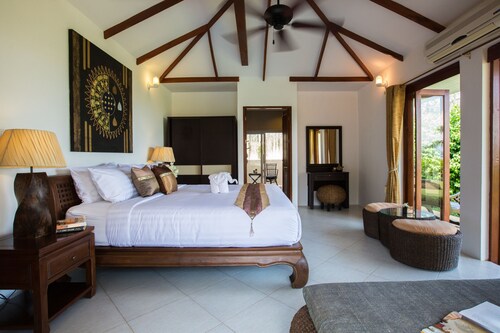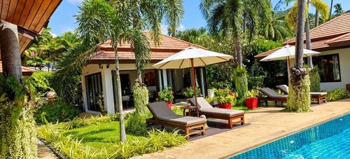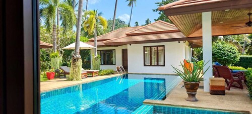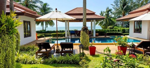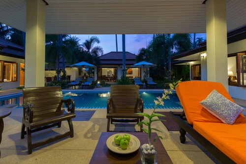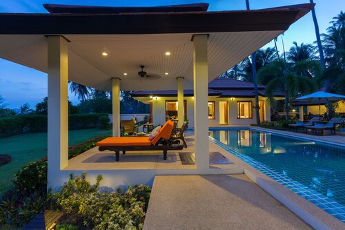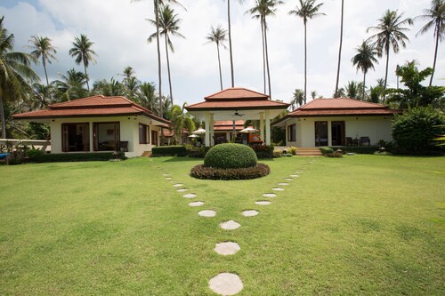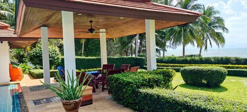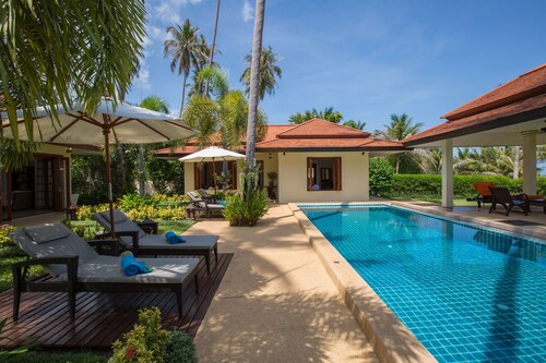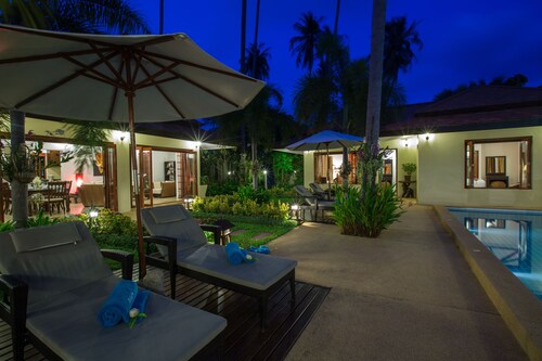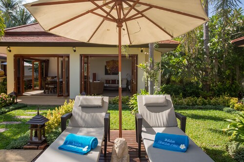 ビーチに位置する、サムイ島のこのヴィラは、レムセット ビーチ、トーン クルト、レーム ソー ビーチから 3 km 圏内です。フアタノン ビーチおよびサムイスタジアムも 5 km 圏内です。 このヴィラでは、ビーチへ行ったり、屋外プールでリラックスしたり、ウォーターパークで一日過ごしたりしてご滞在いただけます。 ヴィラには、ベッドルーム 4 室、WiFi (無料)、フェンス付きのプライベートヤードが備わっています。プライベートプールをご利用いただけるほか、冷蔵庫とオーブン付きのキッチンも備わっています。客室清掃が行われる日が限定されています。