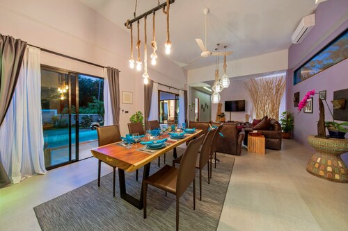 サムイ島にあるファミリー向けのこのヴィラは、海沿いに位置し、レーム ソー ビーチ、トーン クルト ビーチ、レムソー パゴダから 2 km 圏内です。トーン クルトおよびパンガー ビーチも 5 km 圏内です。 屋外プールのほか、この禁煙のヴィラにはホットタブおよび庭園があります。その他の設備にはバーベキューグリルがあります。 ヴィラには、ベッドルーム 3 室、WiFi (無料)、ソファー ベッドが備わっています。プライベートプールをご利用いただけるほか、冷蔵庫とオーブン付きのキッチンも備わっています。客室清掃が行われる日が限定されています。