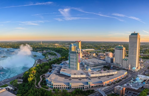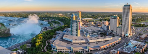 トロントのダウンタウンまたは、ピアソン国際空港から車で約90分のところに位置するヒルトン ホテル アンド スイーツ ナイアガラフォールズ。ニューヨークのバッファローまでも約30分です。カナダのホテルの中で最高の53階建て。