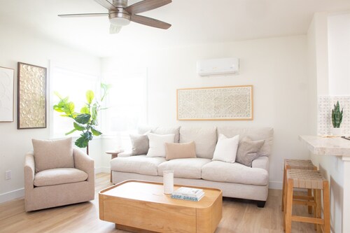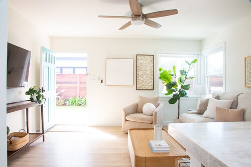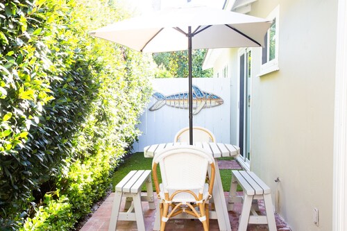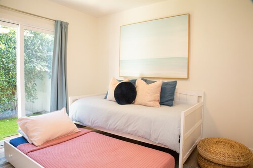 デルマールにあるファミリー向けのこのバケーションホームは、海沿いに位置し、デル マー ビーチおよびデル マー競馬場から 2 km 圏内です。デル マー フェアグラウンズおよびデルマーノースビーチも 15 分圏内です。 この禁煙のバケーションホームには、ウォーターパーク、ランドリー設備、および庭園があります。その他の設備にはバーベキューグリルがあります。 バケーションホームには、ベッドルーム 2 室、WiFi (無料)、フェンス付きのプライベートヤードが備わっています。キッチンには、冷蔵庫、オーブン、コンロ、電子レンジが備わっています。