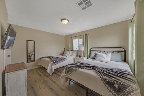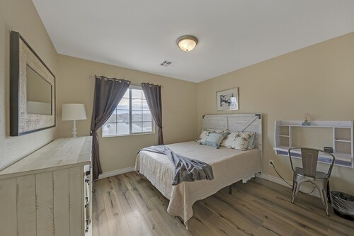 ファミリー向けのこのバケーションホームは街の中心部に位置し、オーリンズ アリーナおよびアレジアント スタジアムから 5 km 圏内です。シャーク リーフ アット マンダレー ベイまで 4.8 km です。 禁煙のこのバケーションホームには、ウォーターパーク、屋外プール、およびホットタブがあります。その他の設備には、ランドリー設備、ゲームコーナー、および庭園があります。 バケーションホームには、プライベートプール、暖炉のほかに、2.5 室のバスルームと洗濯機も備わっています。キッチンには、冷蔵庫、オーブン、コンロ、電子レンジが備わっています。客室清掃はリクエストにより行われます。