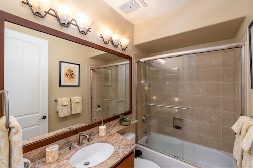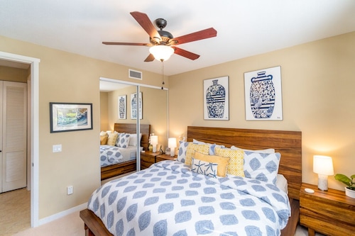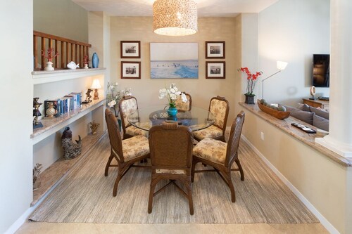カムエラにあるこのゴルフを楽しめるコンドミニアムは、フランシス H.I'i ブラウン サウス ゴルフ コース、ワイコロア ビーチ ゴルフ コース、マウナラニビーチから 2 km 圏内です。ワイコロアペトログリフ保護区およびワイコロアキングスコースも 3 km 圏内です。 フィットネスセンター、ホットタブ、およびランドリー設備がある禁煙のコンドミニアムです。その他の設備にはバーベキューグリルがあります。 コンドミニアムには、ベッドルーム 3 室、WiFi (無料)、DVD プレーヤーが備わっています。キッチンには、冷蔵庫、オーブン、コンロ、電子レンジが備わっています。客室清掃はリクエストにより行われます。