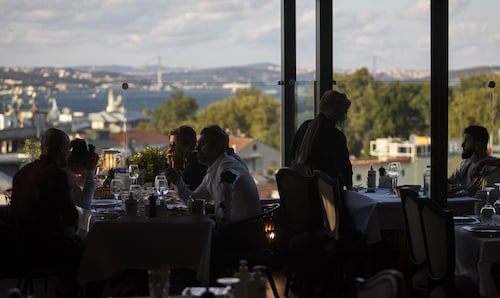 ホテル屋上のテラスレストランでは魚料理、地中海、エーゲ海の料理をサービス。テラスから見えるボスポラス海峡、ボスポラス大橋、ガラタ塔、金角湾を一望しながら美味しい料理を堪能して頂けます。