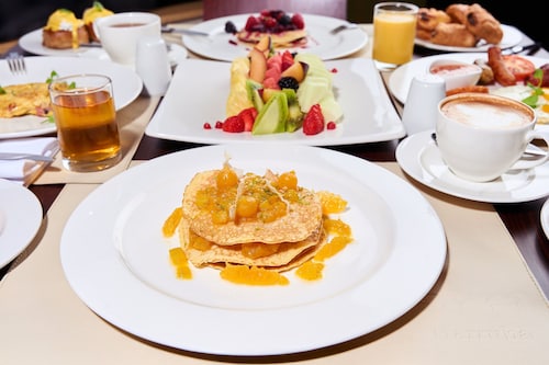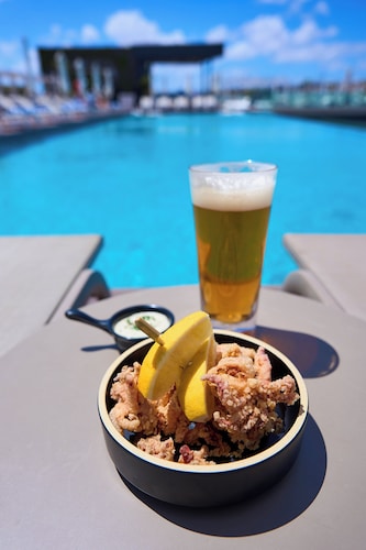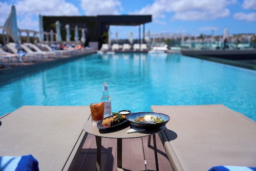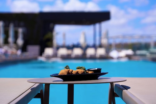屋上には、見晴らしの良い大きな屋外プールとレストランがあります。