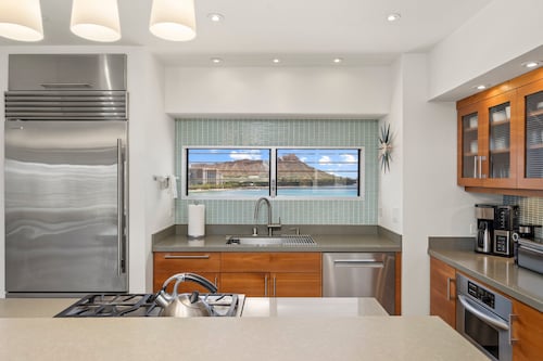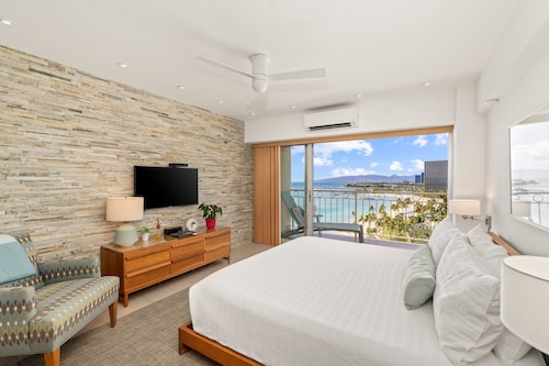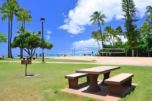 ワイキキに位置する、ビーチフロントのこのコンドミニアムは市内中心部にあり、フォート デルッシー ビーチ パークおよびロイヤル ハワイアン センターから徒歩 5 分圏内です。ワイキキ ビーチ ウォークおよびインターナショナル マーケット プレイスも 15 分圏内です。 このコンドミニアムでは、ビーチで日差しを浴びたり、ウォーターパークで一日過ごしたりしてお楽しみいただけます。 コンドミニアムには、ベッドルーム 2 室、WiFi (無料)、DVD プレーヤーが備わっています。キッチンには、冷蔵庫、オーブン、コンロ、電子レンジが備わっています。