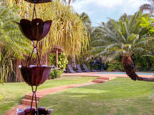 緑豊かな庭、プール、Wifi、BBQがあるハイエンドの近所のハワイアンラグジュアリーヴィラ Luxurious Hawaiian Villa Oasis