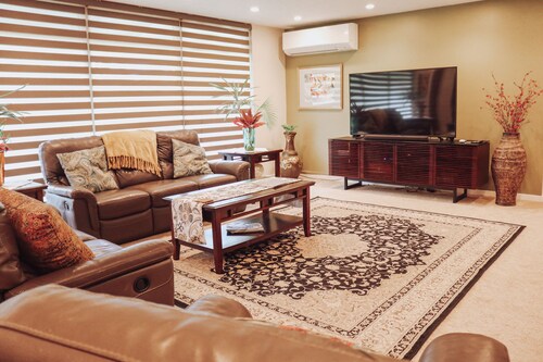 ホノルル東部に位置するこのヴィラは、ハナウマ湾自然保護区およびココヘッドから徒歩 15 分圏内です。マーシャルズビーチおよびハナウマ湾ビーチも 3 km 圏内です。 屋外プール、ランドリー設備、およびゲームコーナーがある禁煙のヴィラです。共用エリアでの WiFiは無料です。 その他の設備には、庭園およびバーベキューグリルがあります。 ヴィラでは、プライベートプールのほかに、キッチン、洗濯機もご利用いただけます。便利な3.5 室のバスルーム、冷蔵庫のほか、パティオ、テレビもご利用いただけます。