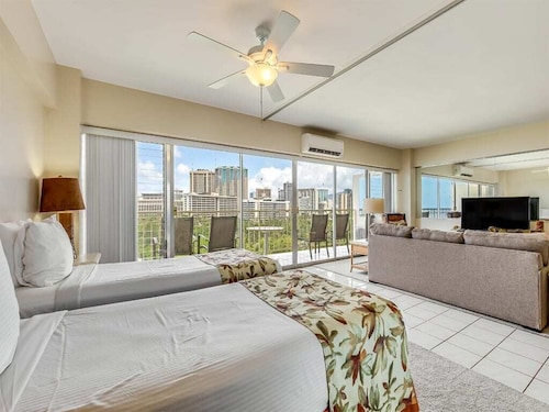 ワイキキに位置するこのコンドミニアムは、フォート デルッシー ビーチ パーク、ロイヤル ハワイアン センター、ワイキキ ビーチ ウォークから徒歩 10 分圏内です。インターナショナル マーケット プレイスおよびワイキキ ビーチも 15 分圏内です。 この禁煙のコンドミニアムには、ランドリー設備があります。 コンドミニアムでは、冷蔵庫とオーブン、コンロ、電子レンジが備わったキッチンをご利用いただけます。便利な洗濯機 / 乾燥機、コーヒー / ティー メーカーのほか、バルコニー、テレビもご利用いただけます。
