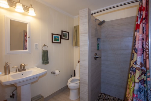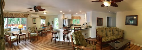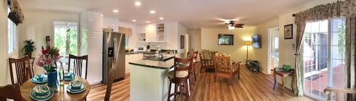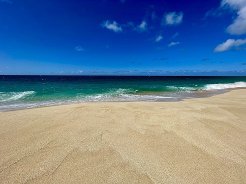 ビーチに位置する、ハレイワのこのバケーションホームは、プウ・オ・マフカ・ヘイアウ州立歴史公園、ケ・イキビーチ、ププケア ビーチパークから歩いてすぐです。シャークズ コーブおよびスリーテーブルズビーチも 15 分圏内です。 このバケーションホームでは、ビーチで日差しを浴びたり、ウォーターパークで一日過ごしたりしてお楽しみいただけます。 バケーションホームには、ベッドルーム 3 室、WiFi (無料)、フェンス付きのプライベートヤードが備わっています。キッチンには、冷蔵庫、オーブン、コンロ、電子レンジが備わっています。