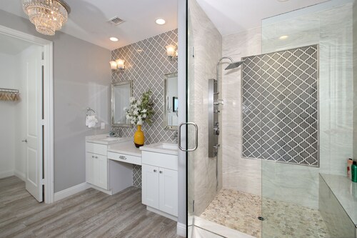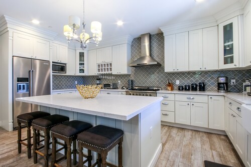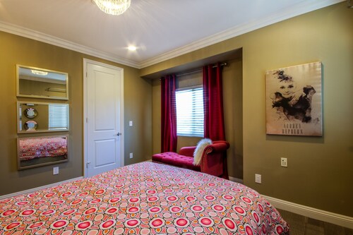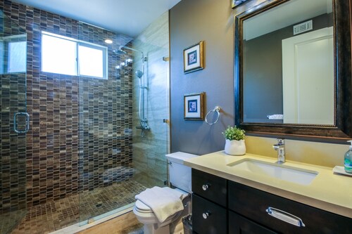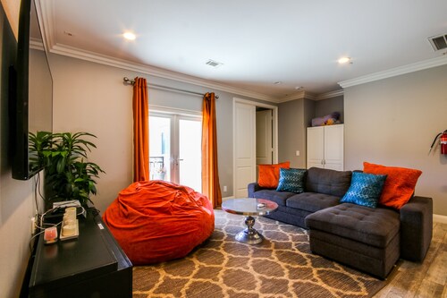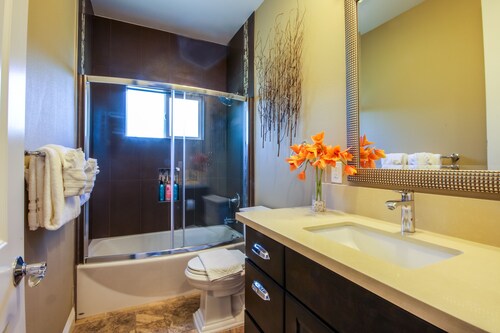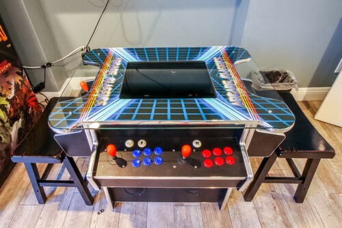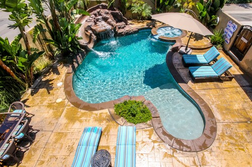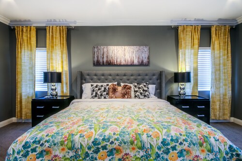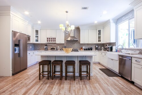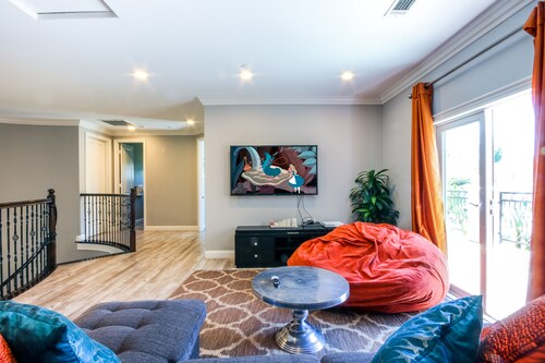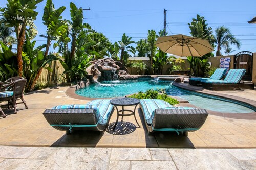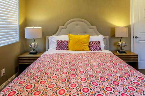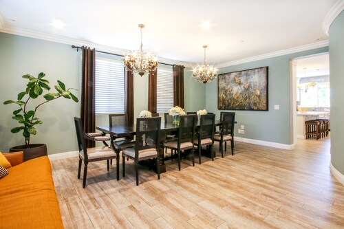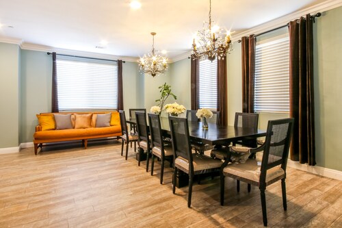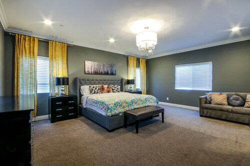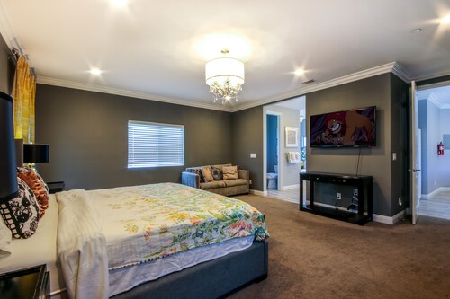 ファミリー向けのこのバケーションホームは街の中心部に位置し、ダウンタウン ディズニー地区、ディズニーランド® リゾート、ディズニー カリフォルニア アドベンチャー パークから 3 km 圏内です。アナハイムコンベンションセンターまで 2.9 km です。 この禁煙のバケーションホームには、屋外プール、ホットタブ、およびランドリー設備があります。その他に、敷地内にはゲームコーナー、庭園、およびバーベキューグリルがあります。 バケーションホームには、ベッドルーム 5 室、WiFi (無料)、ソファー ベッドが備わっています。キッチンには冷蔵庫とオーブンが備わっており、優雅な滞在をお約束するプライベートプール、暖炉もご利用いただけます。