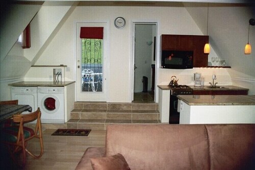 山中にあるこのバケーションホームは、CBS スタジオ センターから 2 km、ユニバーサル・スタジオ・ハリウッドから 2.4 km です。サンタ モニカ マウンテンズ ナショナル レクリエーション エリアおよびウィザーディング ワールド オブ ハリー ポッター™も 3 km 圏内です。地下鉄 ユニバーサルシティ駅まで徒歩わずか 18 分です。 この禁煙のバケーションホームには、ランドリー設備があります。 バケーションホームでは、冷蔵庫とオーブン、コンロ、電子レンジが備わったキッチンをご利用いただけます。便利な洗濯機、コーヒー / ティー メーカーのほか、パティオ、スマートテレビもご利用いただけます。