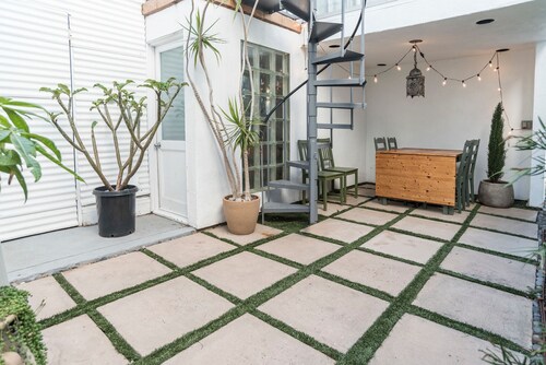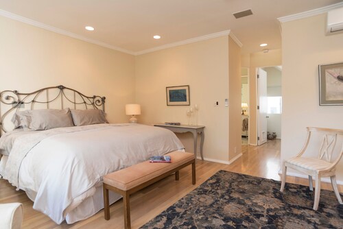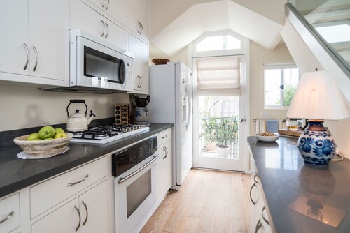 ベニス中心部に位置するこのバケーションホームは、アボット キニー ブールバード、ベニス ビーチ、ベニス ビーチ ボードウォークから 2 km 圏内です。サンタモニカ ビーチおよびサンタ モニカ ピア (テーマパーク)も 5 km 圏内です。 ルーフトップテラス、ランドリー設備、および庭園がある禁煙のバケーションホームです。その他の設備にはグリーンカーテンがあります。 バケーションホームには、ベッドルーム 2 室、WiFi (無料)、フェンス付きのプライベートヤードが備わっています。暖炉をご利用いただけるほか、冷蔵庫とオーブン付きのキッチンも備わっています。