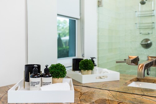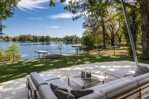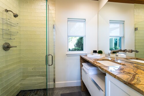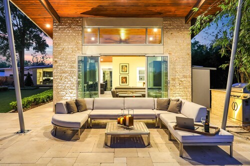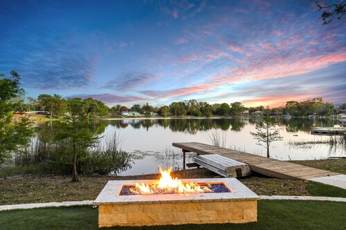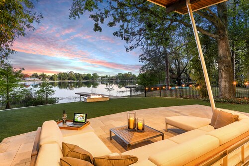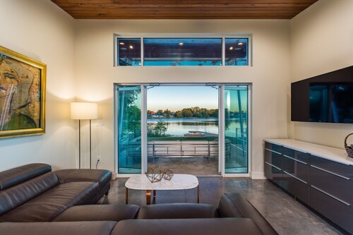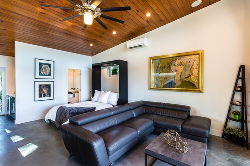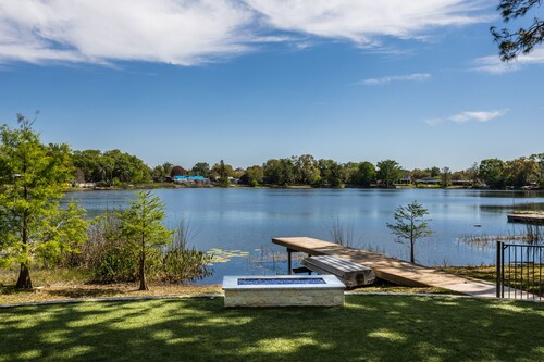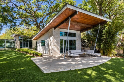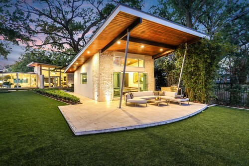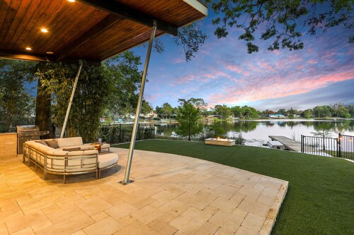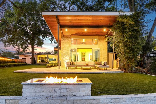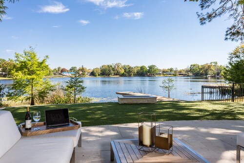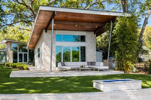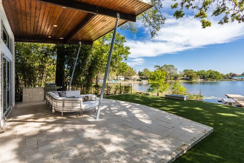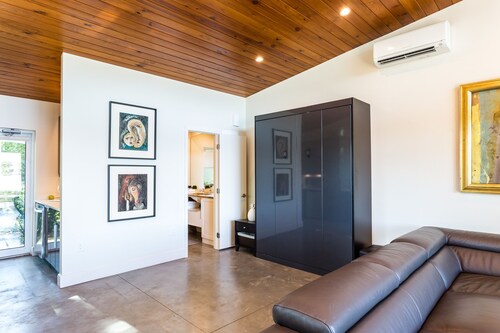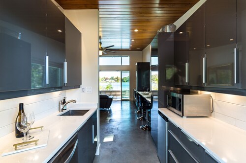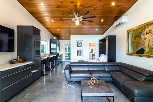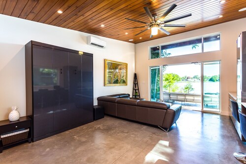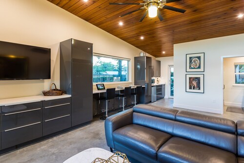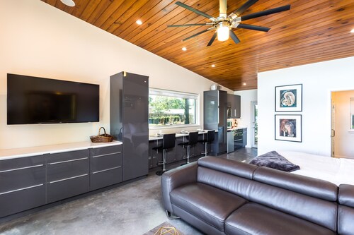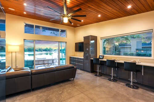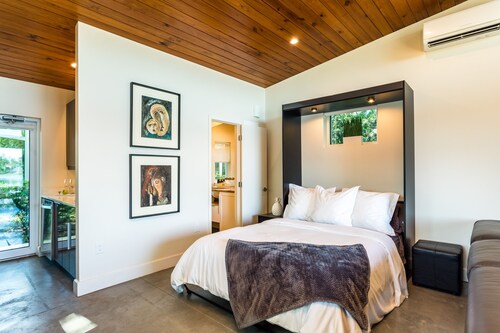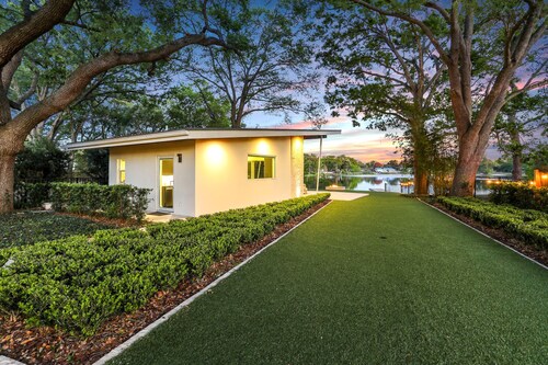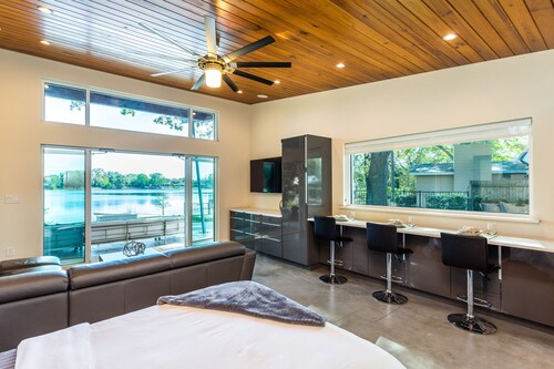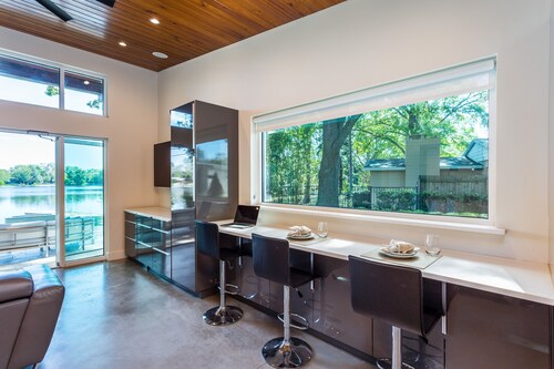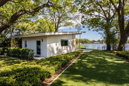 ヒップレトロモダンレイクフロントカバナHip RetroModern Lakefront Cabana with EV Charging Station