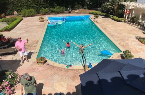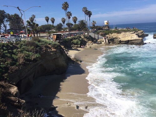ラ ホーヤにあるファミリー向けのこのバケーションホームは、海沿いに位置し、ウィンダンシー ビーチおよびバード ロックから徒歩 15 分圏内です。ミッション ビーチおよびラ ホーヤ コーブも 5 km 圏内です。 ウォーターパークのほか、このバケーションホームには屋外プールおよびランドリー設備があります。その他の設備には、庭園およびバーベキューグリルがあります。 バケーションホームには、ベッドルーム 4 室、WiFi (無料)、ソファー ベッドが備わっています。キッチンには冷蔵庫とオーブンが備わっており、優雅な滞在をお約束するプライベートプール、暖炉もご利用いただけます。