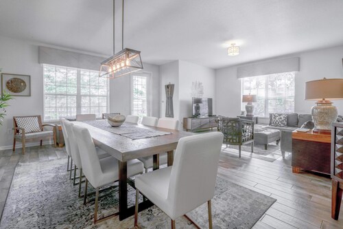 オーランドにあるファミリー向けのこのコンドミニアムは、ウォーターフロントに位置し、シングル クリーク ゴルフ コースおよびユニバーサル・エピック・ユニバースから 3 km 圏内です。オレンジカウンティ コンベンション センターおよびICONパークのオーランドアイも 5 km 圏内です。 この禁煙のコンドミニアムには、ウォーターパーク、屋外プール、およびフィットネスセンターがあります。その他の設備には、ホットタブ、コンシェルジュ サービス、およびランドリー設備があります。 コンドミニアムには、ベッドルーム 3 室、WiFi (無料)、DVD プレーヤーが備わっています。キッチンには、冷蔵庫、オーブン、コンロ、電子レンジが備わっています。客室清掃はリクエストにより行われます。