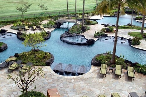 ビーチに位置する、カポレイのこのヴィラは、ホヌ・ラグーンおよびコオリナ マリーナから徒歩 15 分圏内です。コホララグーンおよびナイアラグーンも 5 分圏内です。 このヴィラでは、ビーチで日差しを浴びたり、ウォーターパークで一日過ごしたりしてお楽しみいただけます。 ヴィラには、ベッドルーム 2 室、DVD プレーヤー、バルコニーが備わっています。プライベートプールをご利用いただけるほか、冷蔵庫とオーブン付きのキッチンも備わっています。客室清掃はリクエストにより行われます。