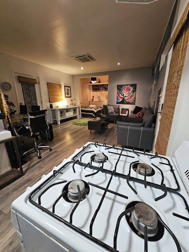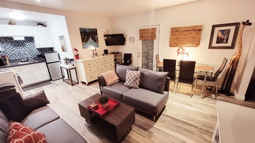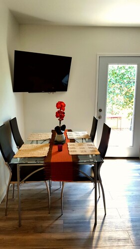 市内中心部に位置する、ロス フェリズのこのバケーションホームはスキー装着のままアクセス可能で、ハリウッド ブールバード、グリフィス天文台、エコー パーク湖から 5 km 圏内です。ハリウッド ウォーク オブ フェーム (名所)まで 4.6 km です。 地下鉄 バーモント - サンセット駅まで徒歩 13 分、地下鉄 バーモント - サンタ モニカ駅まで徒歩 25 分です。 ゲレンデへ直行できるこのバケーションホームには、庭園やバーベキューグリルなどの設備やサービスがあり、アットホームな雰囲気の中でお過ごしいただけます。 バケーションホームでは、冷蔵庫とオーブン、コンロ、電子レンジが備わったキッチンをご利用いただけます。便利なコーヒー / ティー メーカー、ダイニングテーブルのほか、WiFi (無料)、バルコニーもご利用いただけます。タオル交換はリクエストにより行われます。