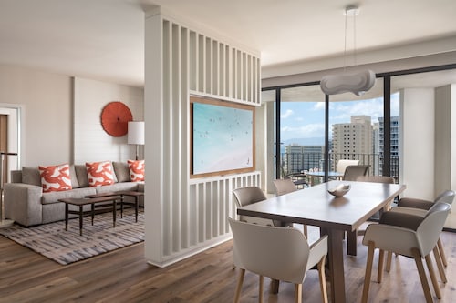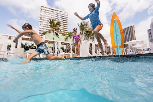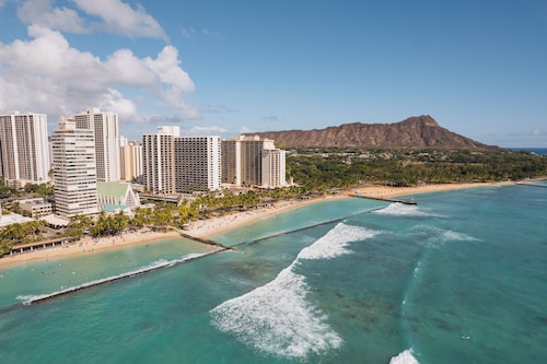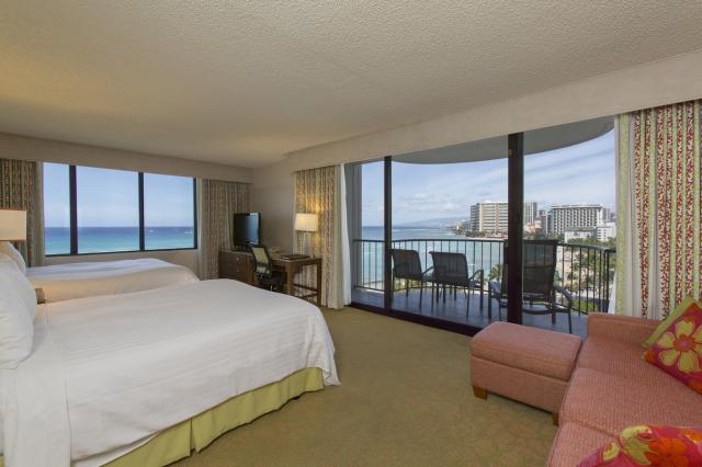 ダイヤモンドヘッドやカラカウア公園にも近く、アラワイのゴルフコースも近距離にある。客室は、アイランドスタイルのインテリアに包まれたラグジュアリーで雰囲気。 屋外にはスイミングプールが2つあり、滞在中はプールサイドでライブエンターティンメントもあり、夕方になりゆっくりと音楽を聴きながら、カクテルも注文しながら、ワイキキビーチを眺めることもできる。