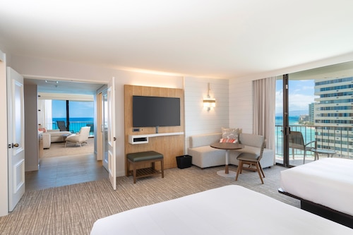 ワイキキ・ビーチ・マリオット・リゾート&スパは、ワイキキのカラカウア通りに建つホテル。 有名なワイキキビーチや太平洋が目の前に広がる。ダイヤモンドヘッドやカラカウア公園にも近く、アラワイのゴルフコースも近距離にある。客室は、アイランドスタイルのインテリアに包まれたラグジュアリーで雰囲気。 屋外にはスイミングプールが2つあり、滞在中はプールサイドでライブエンターティンメントもあり、夕方になりゆっくりと音楽を聴きながら、カクテルも注文しながら、ワイキキビーチを眺めることもできる。24時間対応の日本語スタッフもいるし、ハワイアンカルチャーセンターとウェディングサロン併設のスパもあり、ハワイならではの文化にも親しめる。DFSやワイキキのロイヤルハワイアンショッピングセンターにも歩いていける距離であり、夜はワイキキのレストランやバーなどを散策できる。マリオット内にある「サンセイ」では創作寿司を提供、曜日や時間によってのサービス価格もある。