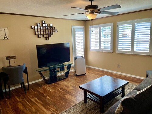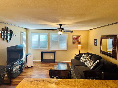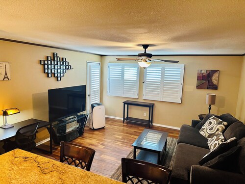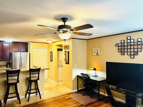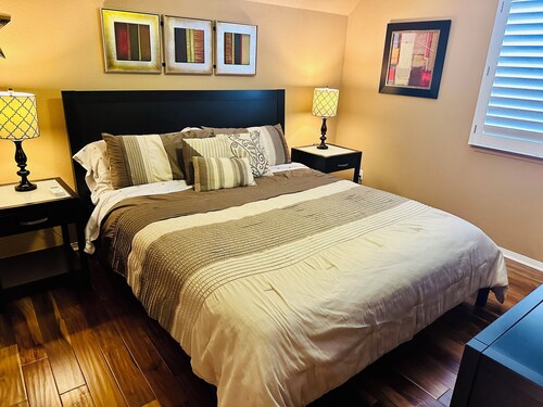 ユニバーシティ シティに位置するこのコンドミニアムは、カリフォルニア大学サンディエゴ校およびウェストフィールド UTCから 2 km 圏内です。サンディエゴ・モルモン寺院およびVA メディカル センターも 2 km 圏内です。ノーベルドライブ・ステーションまで徒歩 8 分、ユニバーシティ・タウン・センター駅まで徒歩 17 分です。 フィットネスセンター、ホットタブ、およびランドリー設備がある禁煙のコンドミニアムです。その他の設備には庭園があります。 コンドミニアムでは、冷蔵庫とオーブン、コンロ、電子レンジが備わったキッチンをご利用いただけます。エンターテインメント設備として、DVD プレーヤー付きのスマートテレビがあるほか、便利な洗濯機、コーヒー / ティー メーカーもご利用いただけます。客室清掃はリクエストにより行われます。