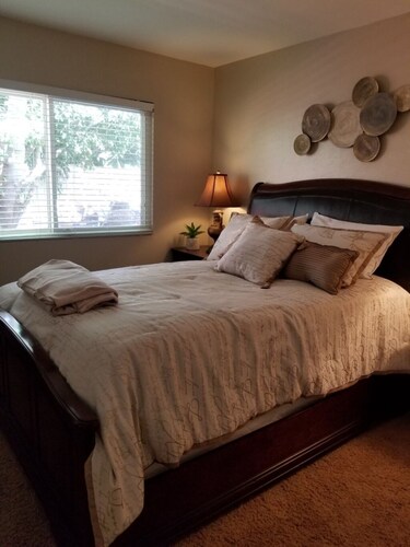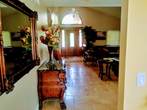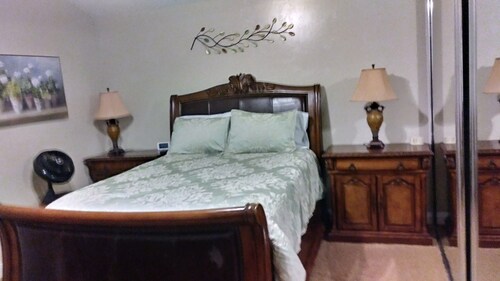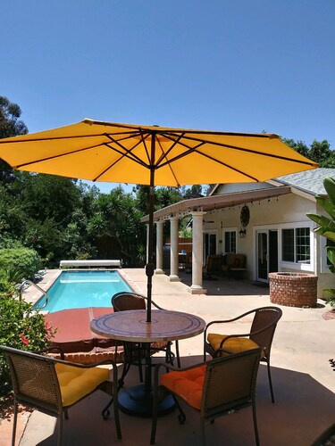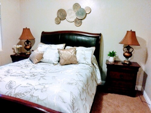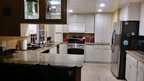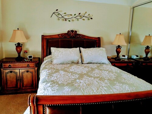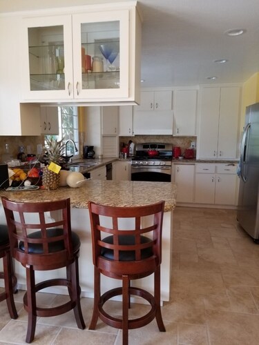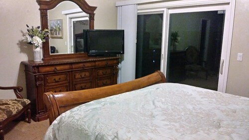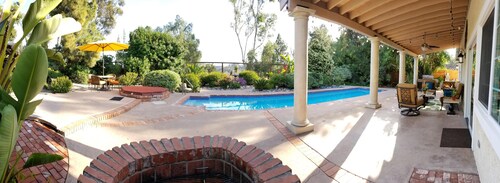 ティエラサンタに位置するこのバケーションホームは、ミッション トレイルズ リージョナル パークから 4.9 km、サンディエゴ州立大学およびサン ディエゴ大学から 15 km 圏内です。 ホテル サークルおよびミッション ベイも 15 km 圏内です。 屋外プール、庭園、およびバーベキューグリルがある禁煙のバケーションホームです。 バケーションホームには、ベッドルーム 3 室、フェンス付きのプライベートヤード、DVD プレーヤーが備わっています。プライベートプールをご利用いただけるほか、冷蔵庫とオーブン付きのキッチンも備わっています。
