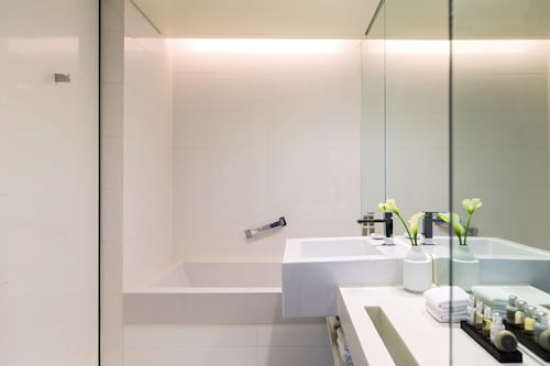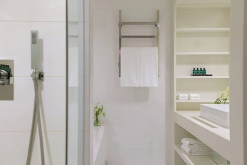 残念な点は、浴槽がプレミア、エグゼクティブのみについているという点。しかしシャワーのみの部屋はガラスの扉で仕切られており、カーテンより保温性があること、シャワーは天井から出るミスト式と手持ちの2つがあり不便さは感じませんし、客室同様清掃が行き届いており綺麗です。バスルームアメニティはイギリスのモルトンブラウン社製でクラブフロアにはエルメスが用意されています。