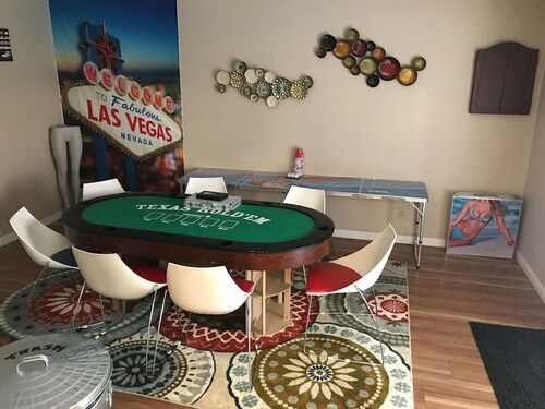 ラスベガスのウィンチェスターに位置するファミリー向けのこのバケーションホームは、ボールダー ストリップおよびフレモント ストリートから 3 km 圏内です。ラスベガス コンベンション センターおよびサハラ ラスベガス カジノも 5 km 圏内です。 この禁煙のバケーションホームには、ホットタブ、コンシェルジュ サービス、およびランドリー設備があります。その他に、敷地内にはゲームコーナー、庭園、およびバーベキューグリルがあります。 バケーションホームには、ベッドルーム 6 室、ソファー ベッド、バルコニーが備わっています。プライベートプールをご利用いただけるほか、冷蔵庫とオーブン付きのキッチンも備わっています。