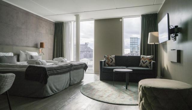 ストックホルム中央駅のちょうど真向かいという抜群のロケーション。バス乗り場からも近いため、バスで市内観光をしたい場合はとても便利です。また、徒歩で約10分ほどのところに、いわゆるメイン・ストリートもありますので、ショッピングにも最適。このホテルはとてもユニークな外観であるため、中央駅を目指すときのランドマークにもなりますよ。なお、アーランダ国際空港から中央駅までも電車で約20分というアクセスの良さもあり、旅行者にも便利なホテルです。いかにも北欧らしいインテリアでまとめられたホテルの客室は、ツインダブル、シングルの中から選べますが、窓のない部屋(シングルとダブルの部屋)がありますので、市街を眺められるような部屋を希望する方は、予約時に必ず確認しましょう。各部屋には、テレビ、バスルーム、洗面台にはヘア・ドライアー、アメニティ・グッズ(シャンプー、ボデイ・クリーム、リンス、固形石鹸)が置いてあります。なお、シングルで窓なしの部屋の場合は、冷蔵庫が設置されていないようですので、生ものなどを購入して保存する場合は注意してください。ベッドは、マットレスも心地よく、快適に過ごせます。ホテル内は全域でWi-Fiを利用でき