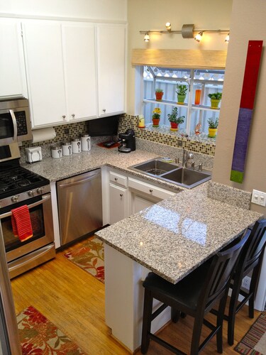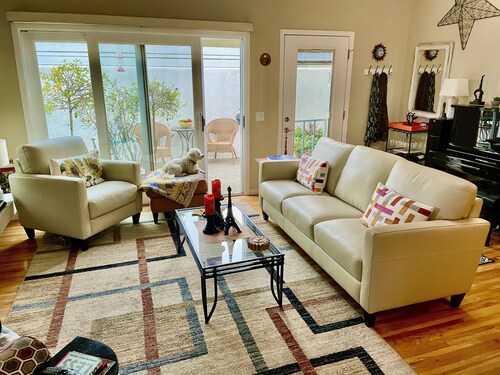 ベニス中心部に位置するこのバケーションホームは、アボット キニー ブールバード、ベニス ビーチ、ベニス ビーチ ボードウォークから 2 km 圏内です。サンタモニカ ビーチおよびサンタ モニカ ピア (テーマパーク)も 5 km 圏内です。 この禁煙のバケーションホームには、ホットタブ、ランドリー設備、および庭園があります。その他の設備にはバーベキューグリルがあります。 バケーションホームには、ベッドルーム 3 室、WiFi (無料)、フェンス付きのプライベートヤードが備わっています。暖炉をご利用いただけるほか、冷蔵庫とオーブン付きのキッチンも備わっています。客室清掃はリクエストにより行われます。