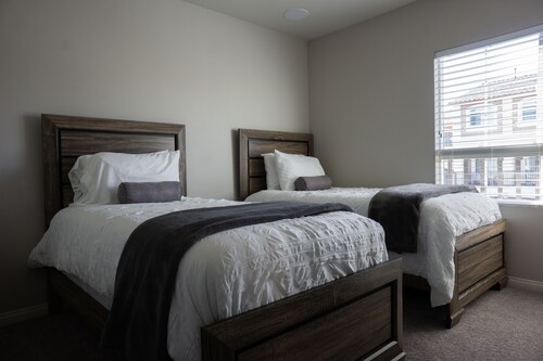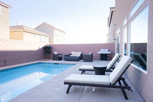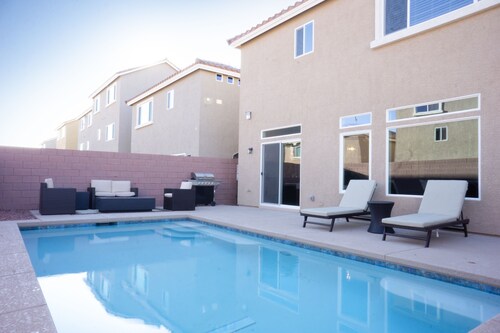 ラスベガスにあるファミリー向けのこのバケーションホームは、ラスベガス サウス プレミアム アウトレッツ、シャーク リーフ アット マンダレー ベイ、バスプロショップスから 10 km 圏内です。タウン スクエア ラスベガスおよびバリ ハイ ゴルフ クラブも 10 km 圏内です。 屋外プールのほか、このバケーションホームにはランドリー設備およびゲームコーナーがあります。その他の設備にはバーベキューグリルがあります。 バケーションホームには、プライベートプール、暖炉のほかに、2.5 室のバスルームと洗濯機 / 乾燥機も備わっています。キッチンには、冷蔵庫、オーブン、コンロ、電子レンジが備わっています。