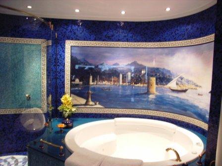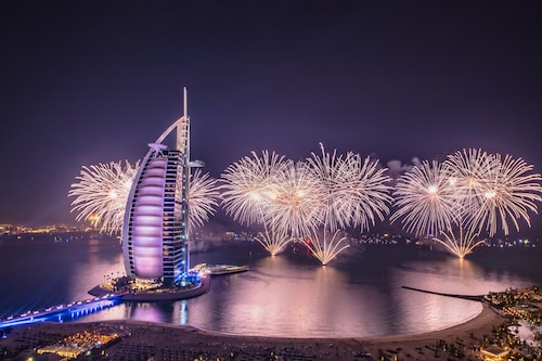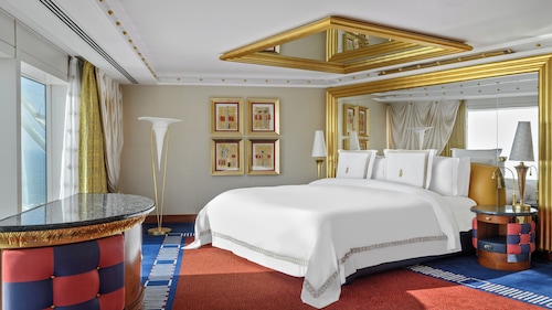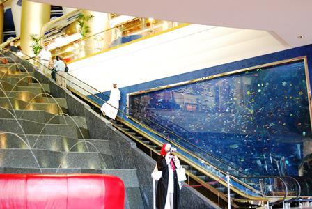 さあ、いよいよ、ドバイのナンバー・ワン・シンボル! ブルジュ・アル・アラブの登場! 世界有数の7ツ星ホテルの中で、最も有名なホテルといっても過言ではない。ホテルは、ドバイが明るい未来へ漕ぎだしていけるよう願いを込めて、船の形で作られている。夜のライトアップ姿も美しい。全室がスイートルームという、夢のホテル。アメニティはすべてエルメス。レセプションが各階にあるほか、各部屋にバトラーという、いわば、自分専用アシスタントがつき、あらゆるリクエストを叶えてくれる。各スイートごとに、部屋の趣向が全く違うので、リピータも飽きないようになっている。眺望もサービスもレストランもプールも、すばらしいホテルなので、ここに泊まるならあちこち観光するのはやめにして、是非、おこもりステイを楽しんでほしい。あまりに有名なため、レストラン、スパ、ホテルの何れかの予約がないと、中にすらは入れないよう制限しているが、それでも、入口は常に、多くの人でにぎわっている。ハネムーンや、特別な記念日など、一生の特別な日に、一度は泊まっておきたいホテルだ。