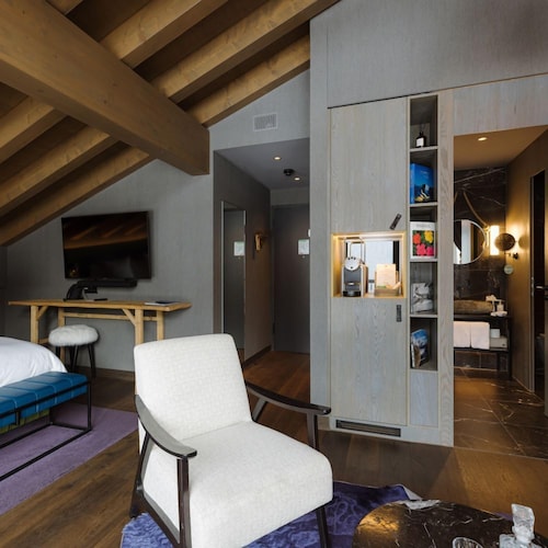 【Wi-Fi客室無料】 美しい山々に囲まれたこのホテルには、4つのサウナ、室内プール、スチームバスがあり、レストランでは地元の食材を使用したメニューをお楽しみたいだけます。客室はスイス産の木材とユニークな家具デザインされ、温かみのあるの雰囲気。窓の外にはパノラマの景色が広がります。プライベートサウナのあるお部屋のご用意もあります。