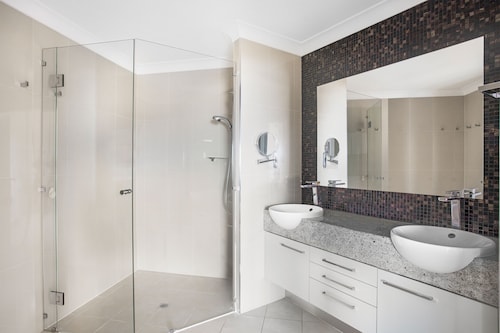 ラグーンプールが目の前、裏側にはパブ・レストランとスーパーマーケット、