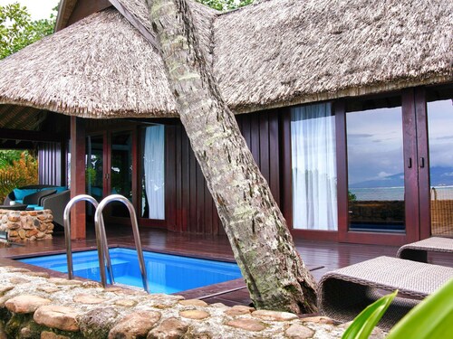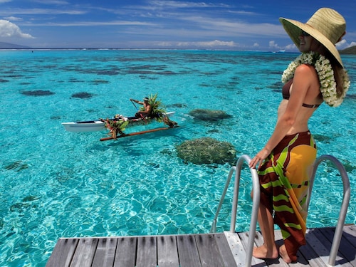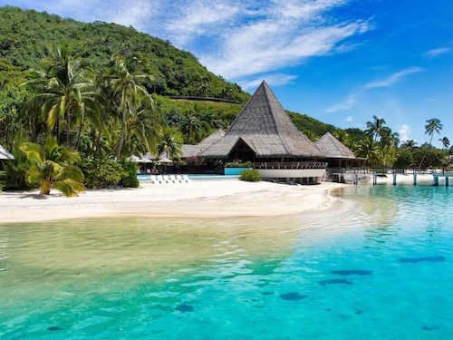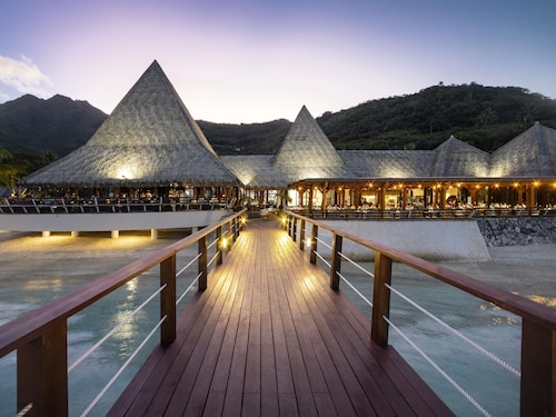 【Wi-Fi全館無料】 【全室禁煙】 タヒチ島を望む壮大なラグーンの端に位置するリゾートホテル。水上に建設された豪華なバンガローまたは美しい庭園に囲まれたバンガローでお過ごしいただけます。レストランやバー、屋外プールやスパなどもあり、さまざまなアクティビティの手配も可能。モーレア空港から車で約5分ほどの場所にあり、充実したリゾートライフを過ごすのに最適です。