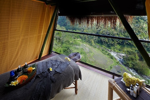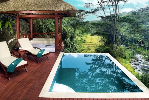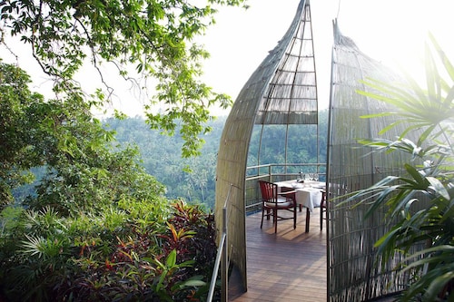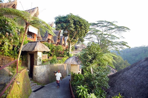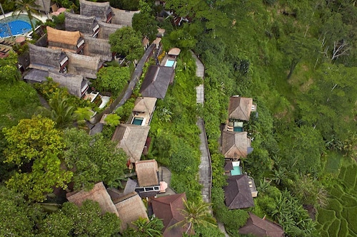 世界中のヨギーニが集いスピリチュアルな人々も多く住むウブドの中でも、「神々の集う場所」という意味のクデワタン村の渓谷沿い建つリゾート、クプクプバロン&ツリースパ。