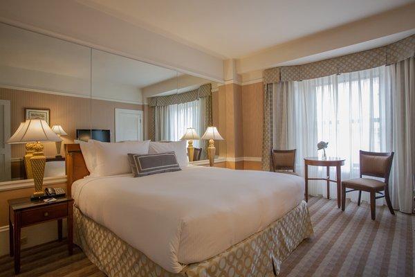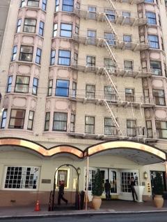 キンプトンホテルグループであるプレスコットホテル。 立地は最高で、ショッピングやグルメに最適です。ユニオンスクエアは目と鼻の先なので夜遅くまでショッピングや観光を楽しむことができるでしょう。ホテル自体はこじんまりとしていて静かなホテルなのでのんびりゆったり過ごしたい方に最適です。大きなホテルよりは小さめのホテルがいいな、と思われる方は是非こちらのホテルへ。 サンフランシスコは全体的にホテル料金が高いと言われていますが、ユニオンスクエアの中では比較的リーズナブルな料金で泊まることのできるプレスコット。おすすめしたいのは、毎日夕方5時から6時の間に開催されているワインアワーでワインの無料サービスがあるんです。 ワインが好きな方にはとっても嬉しいプランですね。朝はコーヒー&お茶のレセプションをやっています。またWIFIが全室無料!立地、コスト面でおすすめしたいホテルです。客室はそこまで広くはありませんがモダンな雰囲気でとても清潔。ベッドも快適です。ドアマンからはじまり、フロントスタッフ、ベル、皆気さくでフレンドリー。泊まってお得なホテルです♪