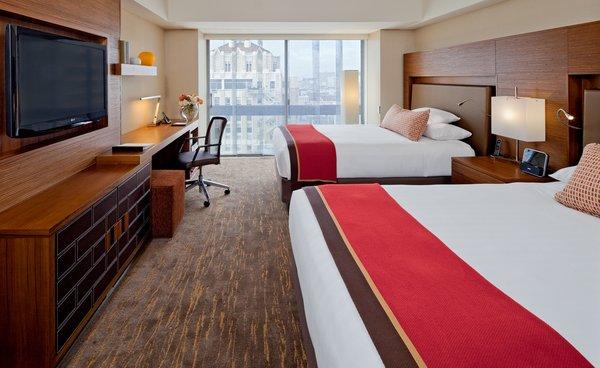 ハイアットグループの最高級ホテルです。ユニオンスクエアのすぐそばでショッピングエリアチャイナタウンにも歩いていすぐの好立地。以前あった最上階の展望レストランはなくなり、中2階にONE UP RESTAURANTがあります。このレストランでは、和朝食を食べることができます。(メニューにはないので事前オーダーが必要。)少し高台に建てられた36階立てのホテルなので、上層階だとお部屋からの景色も最高です。客室の窓が大きめなので、とても開放感があって、景観もいいです。バスタブは、少し深めで日本人好みだと思います。小さめのフロントでコンピューターでのチェックインをいち早く取り入れていますが、フロントにはもちろんサポートをしてくれるスタッフもいるので、大丈夫です。 ロビーは、無料WIFIが使えます。 このクラスのホテルにしては室料価格がリーズナブルです。2017年に地下鉄(セントラルサブウェイ)が開通する為、すぐ前のストックトン通りを工事をしている時があります。この路線が開通するとAT&Tパークやフィッシャーマンズワーフの方に地下鉄でいけるので、より便利になると思います。タクシーやシャトル利用の場合は、ハイアットだけでは、サンフランシスコ市内にハイアットリージェンシーとハイアットフィッシャーマンズワーフがある為、必ずグランドハイアットと伝えて下さい。